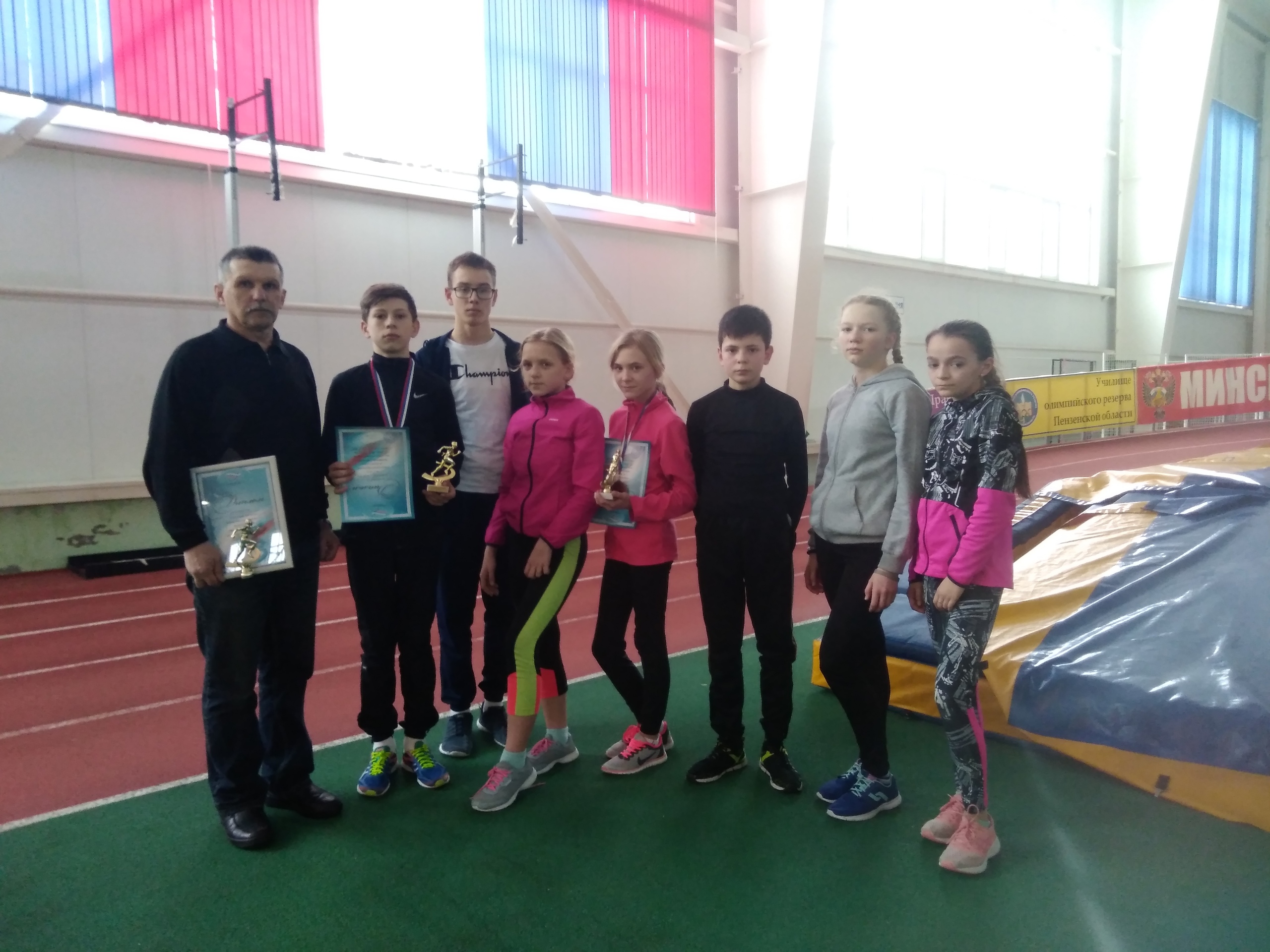 В г. Пенза в первые дни весны 2-3 марта проходили Всероссийские соревнования по лёгкой атлетике среди учащихся девушек и юношей 2004-2005 и 2006-2007 гг.р. В Пензу приехали спортсмены более чем из 30 регионов Российской Федерации! От Сахалина до Волгограда, от республики Саха-Якутия до Пятигорска! Мурманск, Алтай, Новосибирск....И наши юные атлеты составили хорошую конкуренцию своим иногородним сверстникам! Максим Смолин занял 2 место в беге на 400 м с личным рекордом 52,2 с! Поздравляем Максима и его тренера Татьяну Владимировну Конову! Дарья Тихонова, представительница Мокшанской школы бега, одержала победу в финальном забеге на 1500 м с результатом 4:53,3 с! Поздравляем Дарью и ее тренера, а по-совместительству и дедушку спортсменки Сергея Ивановича Деревянко!!! Юная звезда Пензенского спринта Альбина Меняфова в финале А заняла почётное 6 место, повторив свой личный рекорд 7,7 с! Желаем нашим молодым атлетам спортивного долголетия и таких же громких успехов в следующих возрастных категориях!Второй день Всероссийских соревнований по лёгкой атлетике среди учащихся девушек и юношей 2004-2005 и 2006-2007 гг.р. принес нам долгожданную золотую медаль. Куликов Глеб в беге на 3000м с результатом 9.43 мин. занял 1 место. Первый километр ребята преодолели за 3.10мин. , а так как забег был один, пошла позиционная борьба, но в результате бурного финиша Глеб оказался впереди всех. Поздравляем ! Селитра Даша в беге на 1500м с\п наоборот очень быстро начала забег и силенок не хватило. В результате 5.49 мин и третье место, второе место выскользнуло из рук буквально в клетках.у Меняфовой Альбины чуть приболела стопа и она не стартовала во второй день. Многие наши участники пробежали по личным результатам. Секутров Алексей дебютировал в беге на 2000м с\п- 6.57.мин. Свешников Даниил в первый день по личному пробежал 400м- 58.6 сек., во второй день 200м- 26.0 сек. Ломакин Артем показал 57.8 сек. Тефанова Елизавета повторила свой рекорд в беге на 200м -28.8.сек.Порадовала и Селитра Вероника пробежав свои самые быстрые 200м- 29.0 сек. Бульгин Александр в первый день пробежал 1500м за 5.06 мин. - это его личный рекорд. Выступление можно считать успешным. Ребята набрались опыта , посмотрели на других , приобрели друзей, зарядились огромным желанием тренироваться дальше и покорять новые вершины.