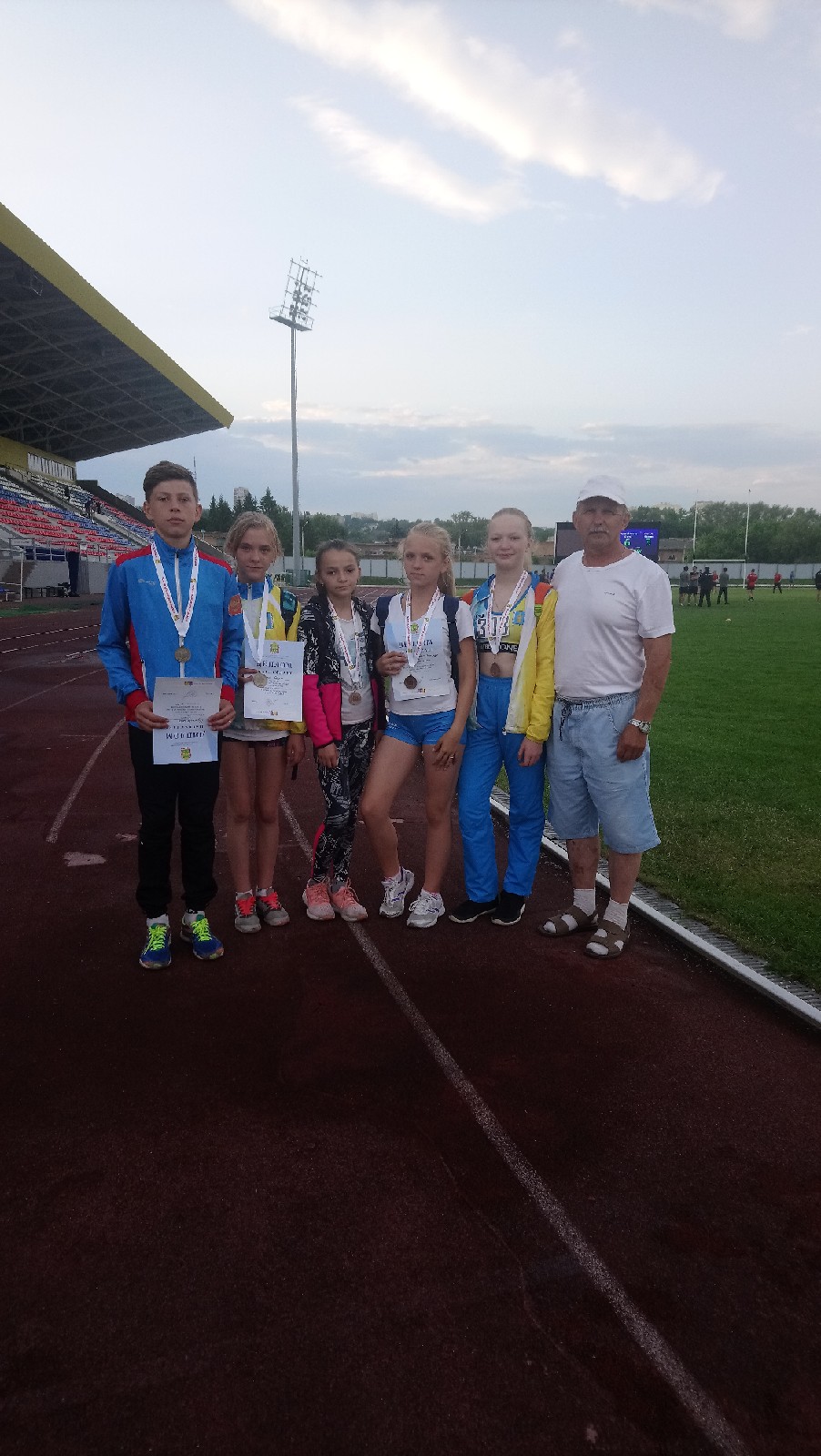 Второй день принес нашему району две золотые мадали. Куликов Глеб одержал уверенную победу в беге на 3000м с результатом 9.46. Селитра Даша здорово пробежала 3000м. с новым личным рекордом -11.23 мин. Серебряную медаль на этой дистанции завоевала Сабанцева Елизавета . Две наши девочки попали в финал бега на 200м. Каримова Полина и Меняфова Альбина , но в финале только 5 и 6 место соответственно. От старта к старту прогрессирует Свешников Данила , накануне завоевавший бронзу в беге на 400м. В финал бега на 200м Данила попал в финал с последним временем ,но с личным рекордом 25.1 . В финале Данила пробежал еще мощнее и в итоге 6 место и личный рекорд- 24.8 сек. В заключении, команда наших девочек в составе Тефановой Елизаветы , Меняфовой Альбины ,Каримовой Полины и Селитры Вероники завоевали бронзовые награды в эстафете 4х100м . В итоге наши завоевали 12 медалей областного Первенства !!! 5 золотых , 3 серебряных и 4 бронзовых медалей !!! Так держать !!! Нельзя не отметить и наших внеконкурсников . Пантелеев Андрей здорово пробежал 800м -2.02мин., личный рекорд . Платонова Анастасия опять чуть не дотянула до личного рекорда в беге на 800м 2.20.4 мин. Неплохо пробежала 800м и Каримова Валерия-2.25.мин. 11-12 июня на стадионе Первомайский будет проходить Первенство области по легкой атлетике среди юношей и девушек 2002-2003 г.р. Прекрасные шансы на победу имеют Пантелеев Андрей ,Каримова Валерия , Платонова Анастасия . Болеем за наших!!!