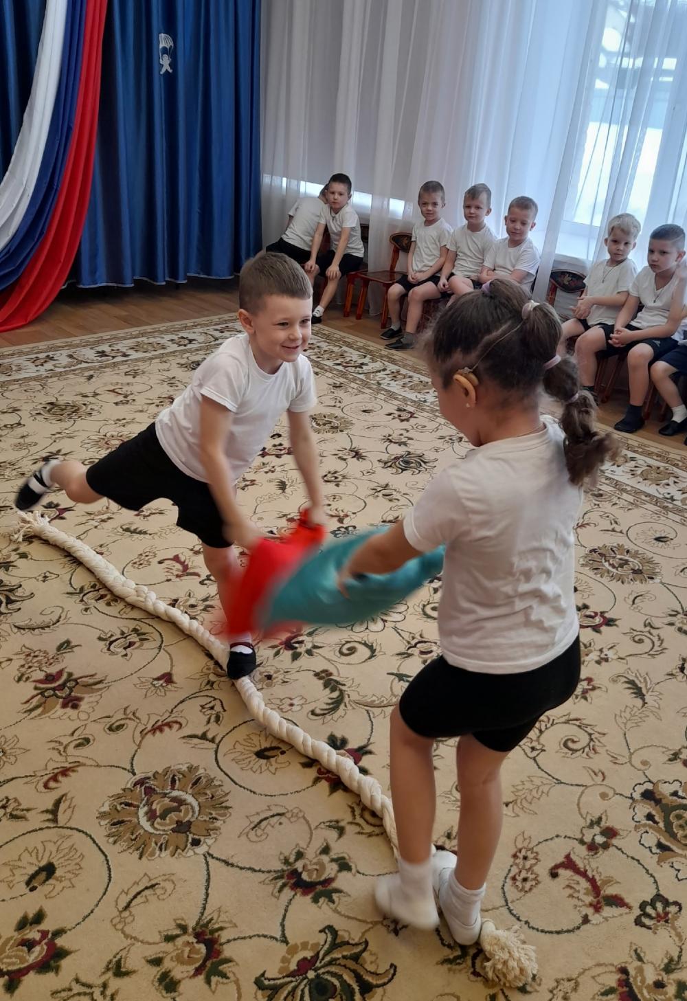 Ребята с удовольствием соревновались в быстроте, ловкости и силе. Мы провели множество интересных и увлекательных конкурсов: тянули канат, выполняли отжимания от пола, участвовали в скоростном беге и даже устраивали бой подушками!