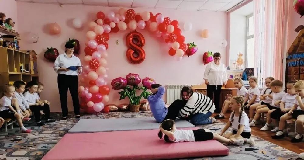 В преддверии Международного женского дня в дошкольном учреждении состоялся спортивно-развлекательный праздник , который объединил детей и их мам. Участницы не только соревновались в ловкости и скорости в веселых эстафетах, но и продемонстрировали серьезную физическую подготовку, сдавая нормативы комплекса ГТО .